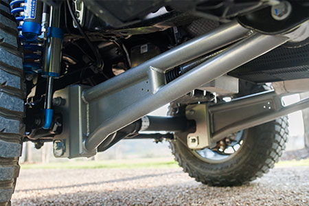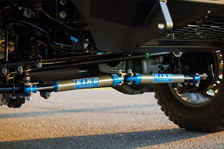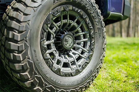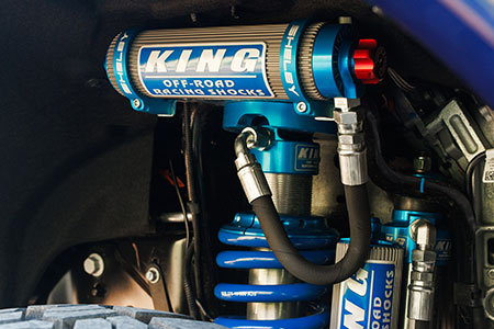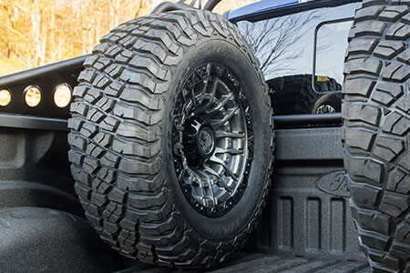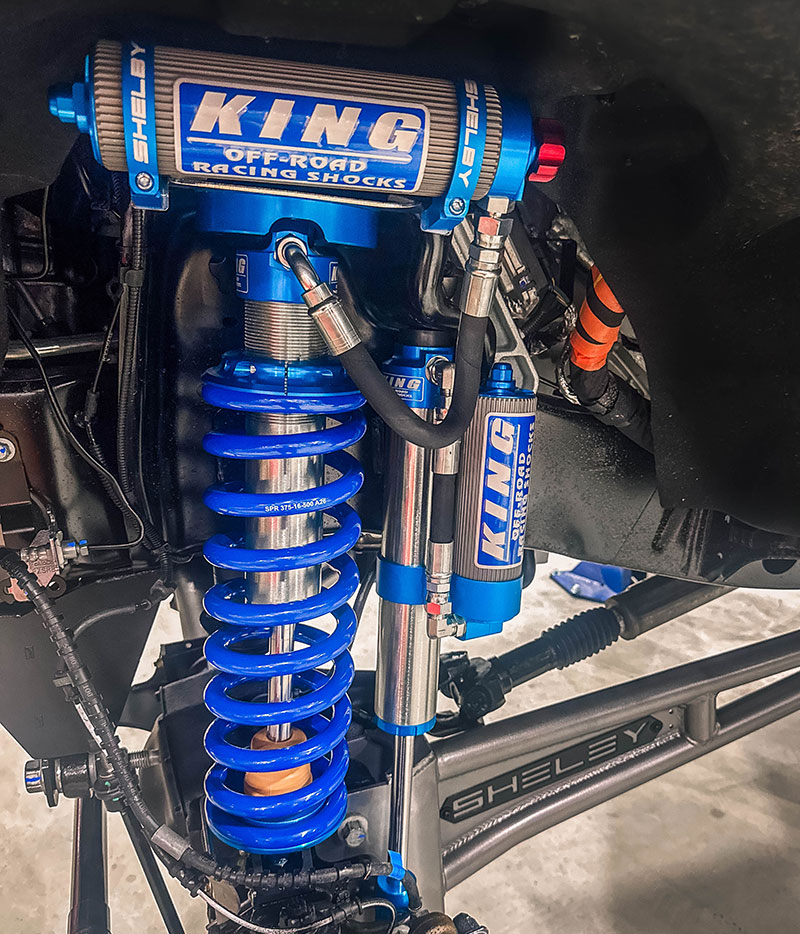 A Shelby-proprietary suspension system featuring KING Race Series 2.5 adjustable front coilovers, rear piggyback shocks, and dual steering stabilizers delivers confident handling and smoother performance across demanding terrain. Massive 37-inch BFGoodrich tires mounted on 20-inch two-tone off-road wheels ensure traction and durability wherever the trail leads.