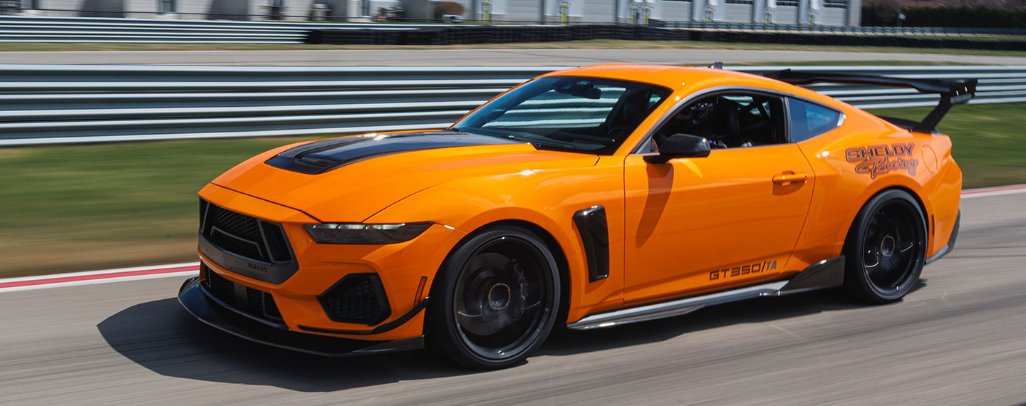 Confidence comes from Pro-System Alcon endurance brakes, Forgeline VX1S racing wheels and Pirelli P Zero tires. Inside, purposeful upgrades-carbon-fiber IP/door trims, Shelby performance leather seats, carbon shifter, serialized dash and a 4130 chromoly TIG-welded 4-point cage-deliver a driver-first environment with Shelby craftsmanship.